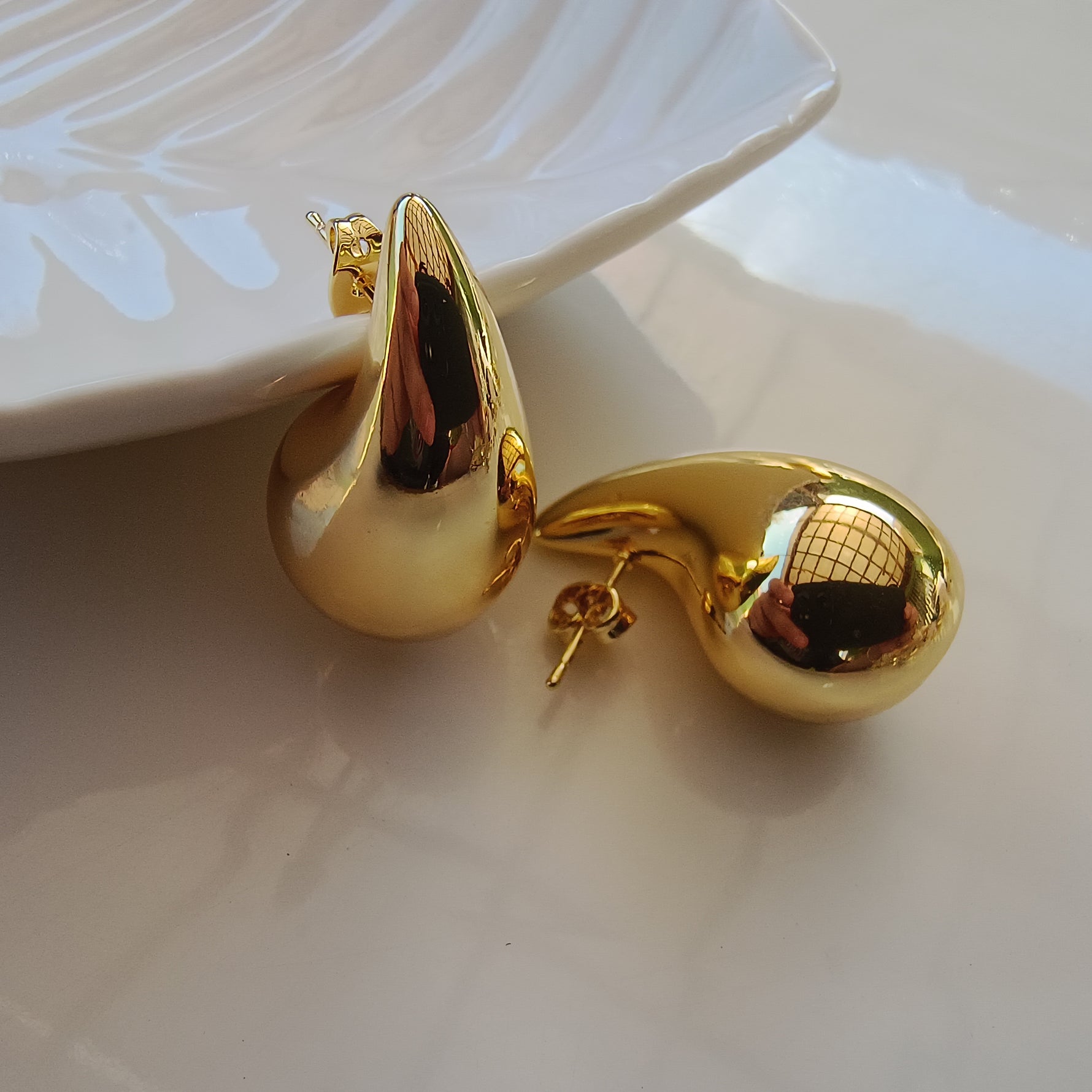 Aros Gota Tamaño Grande - Baño de Oro 18Kt