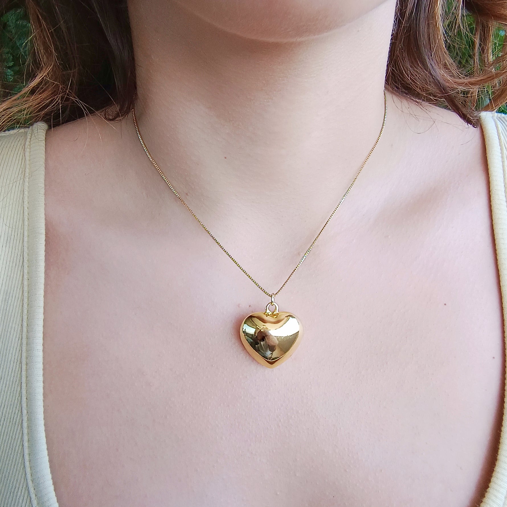 Conjunto Cadena y Colgante Corazón Inflado Grande - Baño de Oro 18Kt