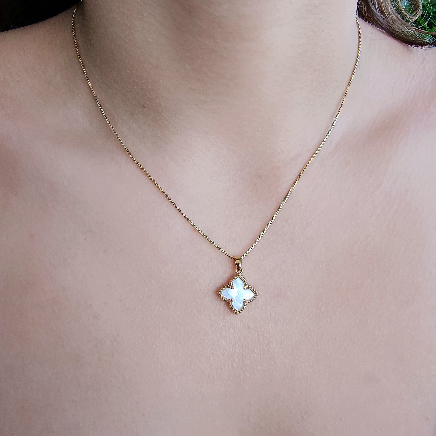 Conjunto Cadena y Colgante Trébol Nacarado - Baño de Oro 18Kt