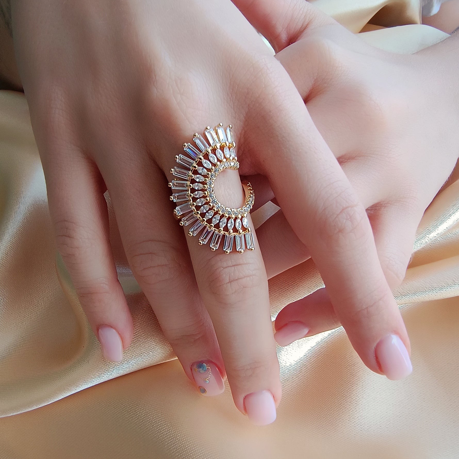 Anillo Abanico - Medida Ajustable - Baño de Oro 18Kt y Circones