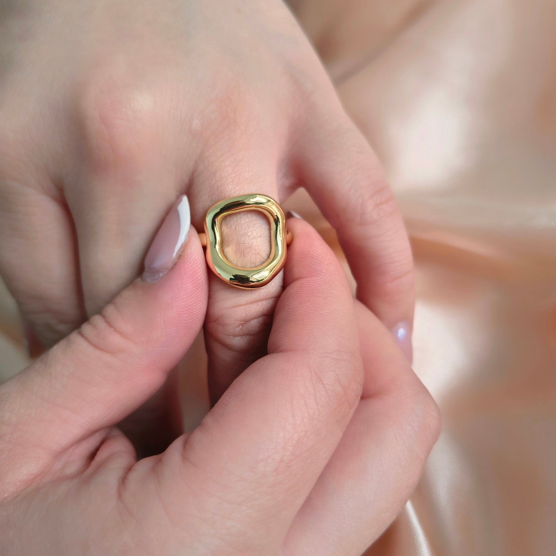 Anillo Óvalo Mediano - Medida Ajustable - Baño de Oro 18Kt