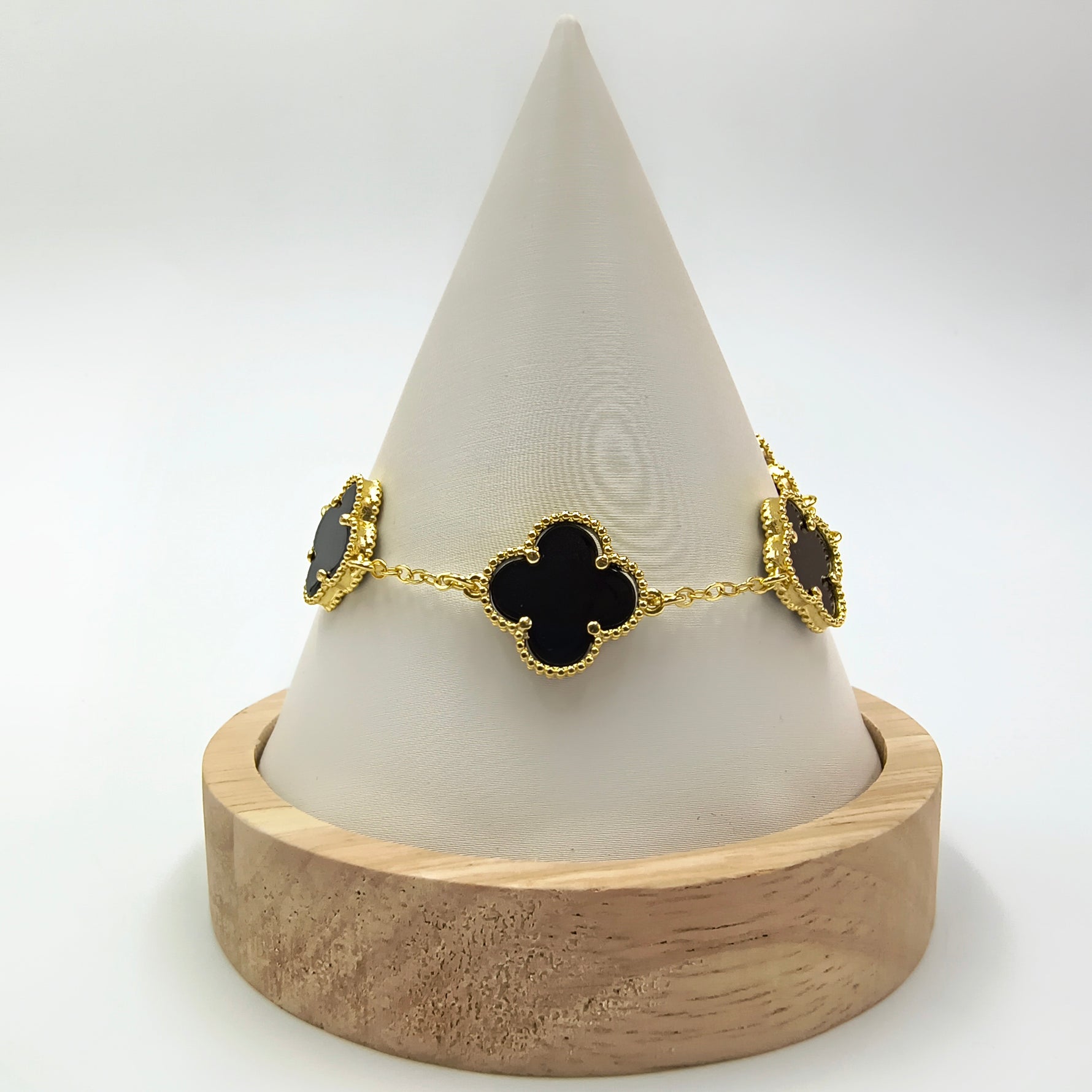 Pulsera Tréboles Negros - Baño de Oro 18Kt