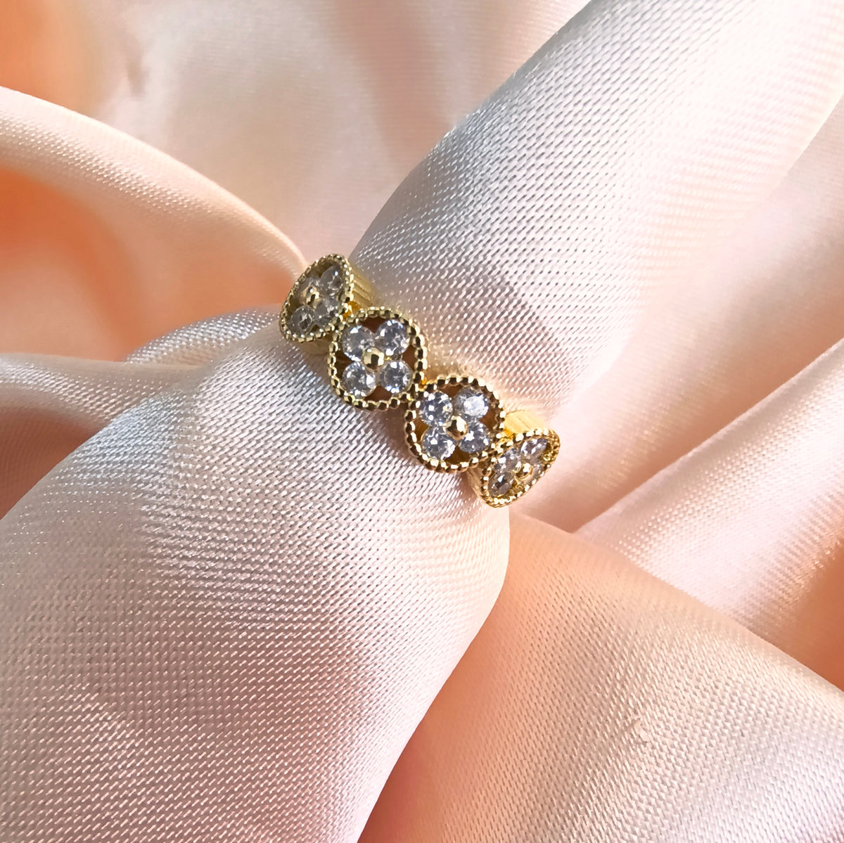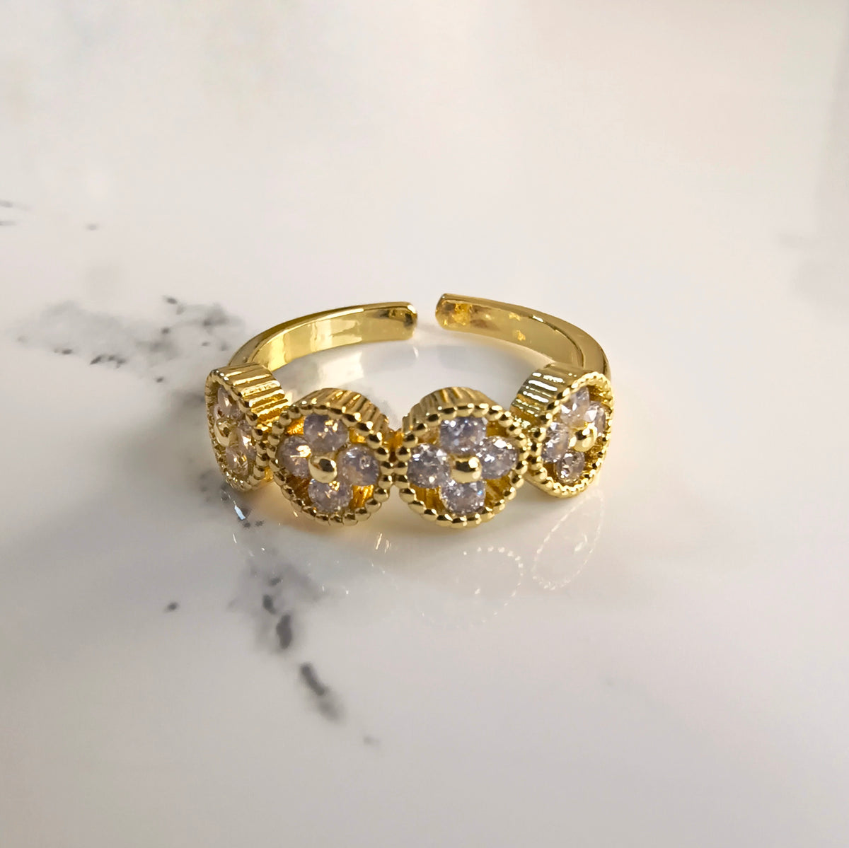 Anillo Corona de Tréboles - Medida Ajustable - Baño de Oro 18Kt y Circones